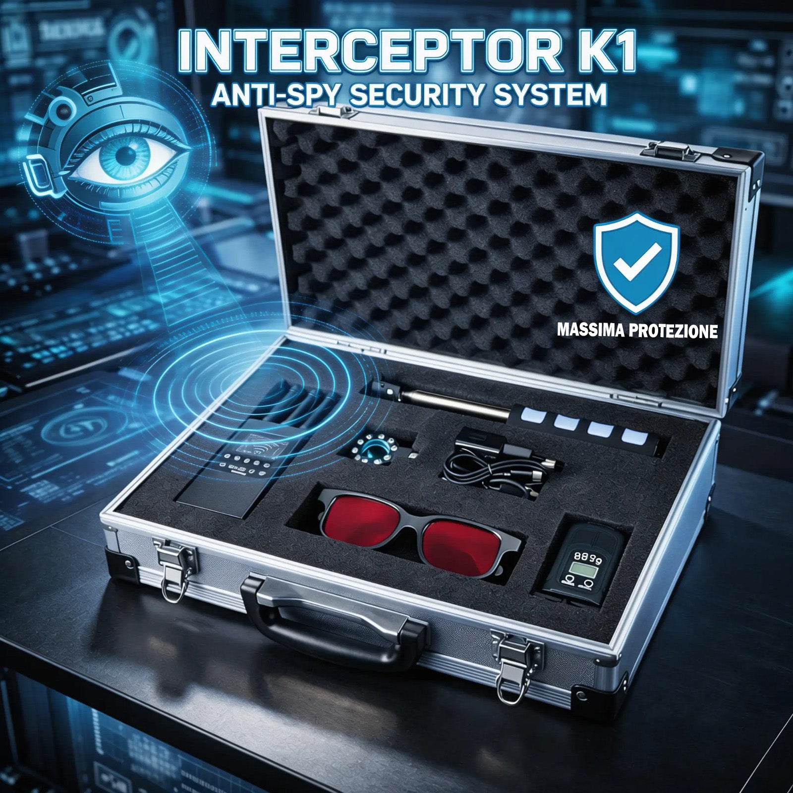 ✅VALIGIA DI ALTA QUALITA': Il kit è contenuto in una valigia robusta con guarnizione ermetica, valvola automatica di pressurizzazione e chiusure a doppio step. Questo design assicura la protezione degli strumenti contro agenti atmosferici e garantisce la loro integrità durante il trasporto. Con il Kit Interceptor K1, investi nella tua sicurezza e privacy, mettendo a tua disposizione gli strumenti avanzati necessari per mantenere un ambiente privo di intrusioni indesiderate.