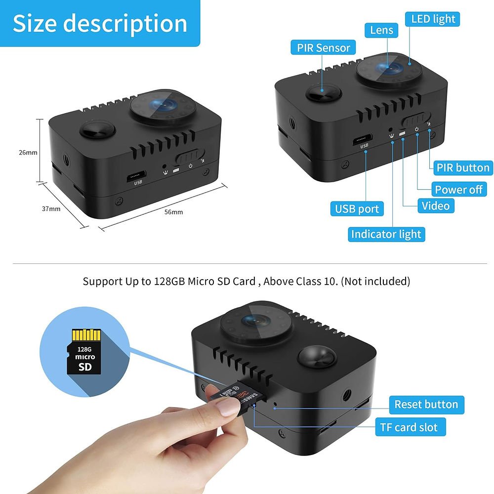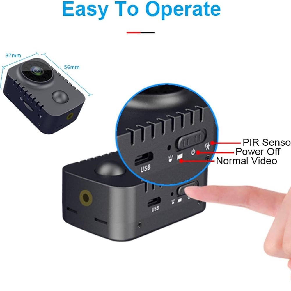 Micro telecamera infrarossi con capacità di visione notturna automatica e sensore di movimento.