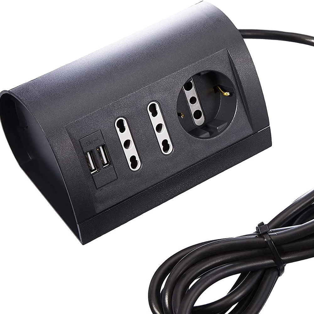 Multipresa appoggiabile sulla scrivania o su qualsiasi altro ripiano grazie ai piedini adesivi\nGrazie alle due prese USB, puoi ricaricare due oggetti contemporaneamente, per esempio smartphone e tablet, sfruttando una corrente massima di 2,1 ampere ripartita sui dispositivi collegati\n1 presa tedesca schuko p30: può supportare una corrente massima di 16a; consente anche l'inserimento di spine piatte da 10a\n2 prese bipasso p17/11: supportano una corrente massima di 16 ampere (10/16a)\nCavo lungo 2 metri con spina 16 ampere\nClasse di efficienza energetica: a\nColore: nero antracite\nTensione: 250 v (volt); potenza: 3500 w (vatt)\nCon il suo design pulito ed elegante si adatta facilmente a qualsiasi tipo di arredamento\nAL SUO INTERNO E' PRESENTE UN SISTEMA DI ANTIFUTO CON MICROFONO GSM PER SENTIRE A DISTANZA\n \nANTIFURTO GSM ambientale con microfono ad alta sensibilità\nFunzione di richiamo automatico in presenza di rumori\nAttivabile da remoto tramite semplice SMS\nCompleta di batteria ricaricabile\n \nQuesto antifurto Spy GSM è la migliore soluzione per l'ascolto ambientale\nInoltre, tramite l'invio di un semplice SMS, si puo' attivare la funzione VOX\nChe permette all’antifurto di chiamarvi, se rileva rumori oltre la soglia di 45 db nell'arco di 4 metri!\nIn pratica potrete scegliere due diverse modalità di funzionamento,\nA seconda delle vostre esigenze:\n1) Ascolto ambientale classico:\nVoi chiamate il numero presente all'interno dell’antifurto, e questa si attiverà consentendovi l'ascolto di voci e suoni fino ad una distanza di circa 20m. Naturalmente influiscono sulla qualità dell'audio, il segnale GSM,i rumori di sottofondo ecc ecc\n2) ascolto ambientale tramite sistema VOX:\nPer attivare la funzione basta chiamare con il cellulare l’antifurto. Una volta attivato il microfono, attendere almeno 3 secondi e poi riattaccare. In questo modo memorizza il numero da chiamare, e se rileva rumori oltre la soglia di 45 db nell'arco di 4 metri, vi richiamerà. Potrete anche attivare la funzione VOX inviando un SMS con 1111 al numero inserito nella microspia. Per disattivare la funzione VOX basta inviare un SMS con 0000 al numero presente nell’antifurto.\n- Funziona con tutte le SIM in commercio, anche estere,\n- NON FUNZIONA con SIM della Tre ed in genere tutti gli operatori H3G\n- Problemi di attivazione riscontrati con alcune SIM della TIM da 128K\n- 2 Microfon1 ad alta sensibilità\n- Batteria al Litio con durata in Stand By fino a 5 giorni in assenza di corrente elettrica(VOX disattivata)\n- Durata della batteria in ascolto 4/5 ore in assenza di corrente elettrica\n- Batteria Ricaricabile automatica\n- Possibilità di ascolto 24/24 ore in continuo quando collegata alla rete elettrica\n- Non emette nessun suono, beep o lampeggio\n- Frequenza GSM : 850 / 900 /1800 /1900