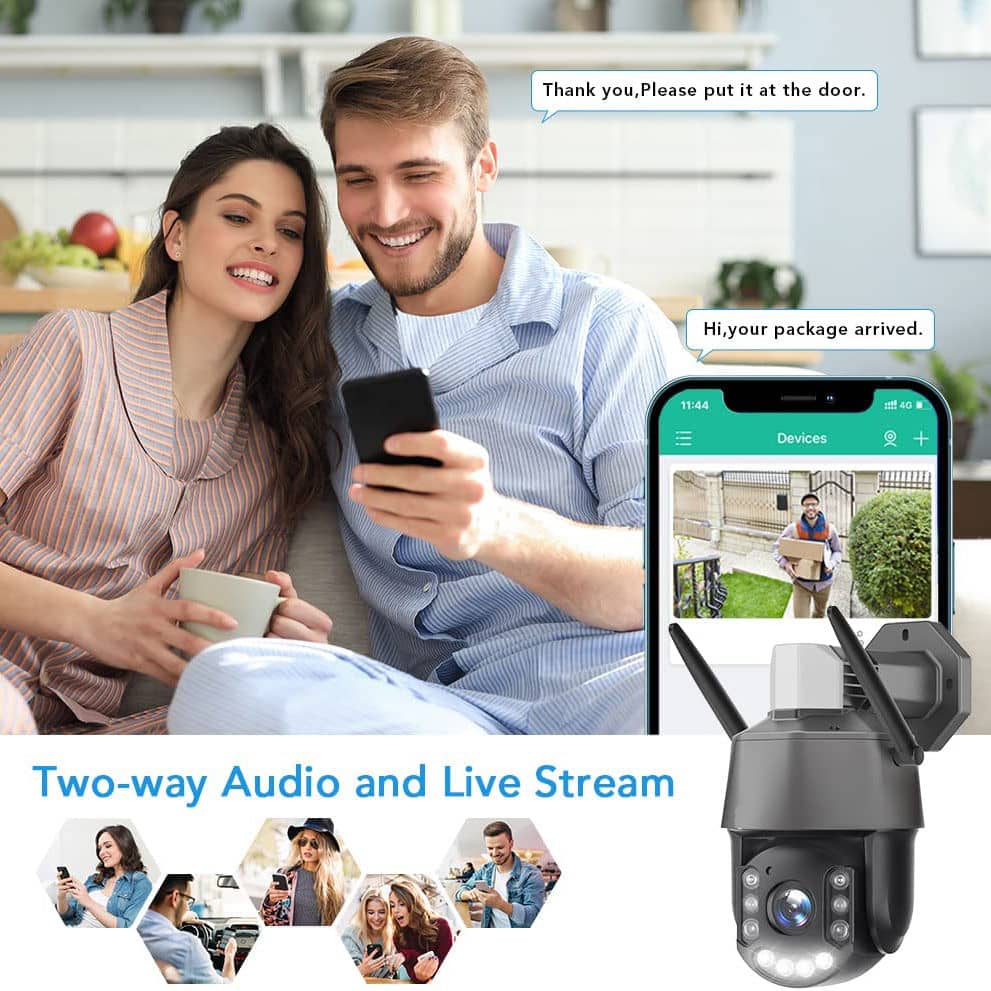 - Ampia Panoramica: Con una panoramica di 355° e un'inclinazione di 90°, la telecamera può monitorare ogni angolo della proprietà. \n