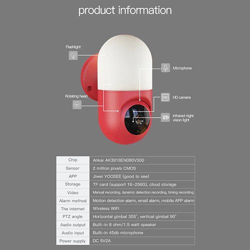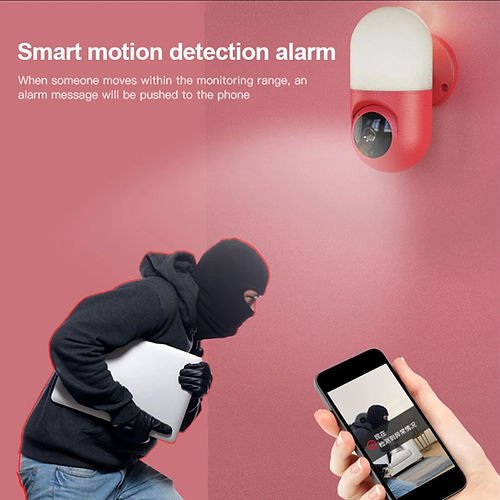 Telecamera wifi da parate per una sicurezza avanzata con visione completa e flessibile a 360 gradi. Funzioni di allarme e una lampada integrata per la luce notturna.