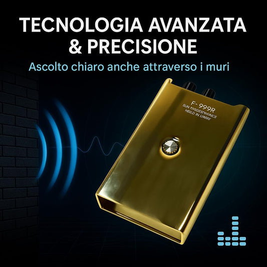 DECATRONIC Microfono da Parete Professionale per Ascoltare Attraverso i Muri - Sistema con Filtri Avanzati, Microfono ad Ago e Uscita Registrazione - Ideale per Casa, Ufficio e Sicurezza (F999R Gold)